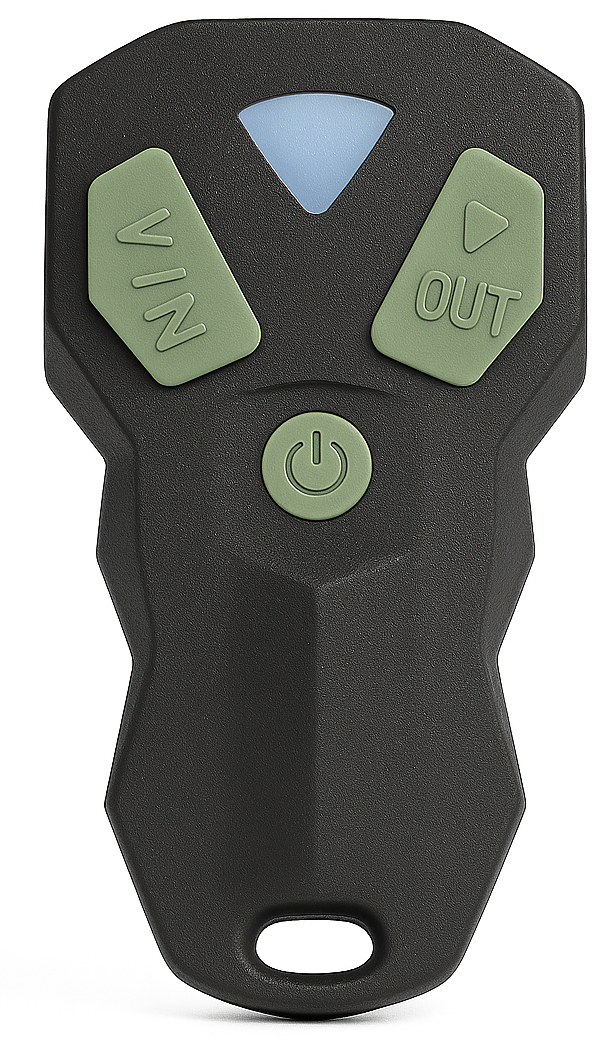 - Release, then hold IN + OUT again until light flashes then turns off. ✅ Remote is now reprogrammed.